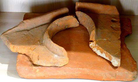 Auch wurden gut erhaltene Dachziegel gefunden, die dort geformt und gebrannt wurden. Eine keramische Spezialität sind sicher die Ziegel, die so geformt sind, dass sie den Einbau eines Abgasrohres für einen Ofen ermöglichten. Muster findet man im Stadtmuseum.